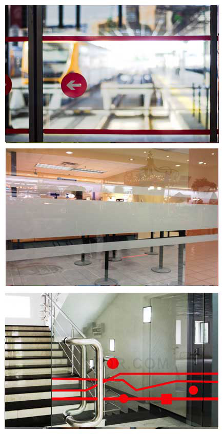 Pour tout établissement recevant du public dans le cadre de l’accessibilité et la sécurité de la clientèle, les films de visualisation, ou de signalisation, servent à marquer la présence d'une paroi vitrée. Grace au contraste visuel qu’ils créent, ils rendent visibles vos vitrages, et évitent les accidents.
